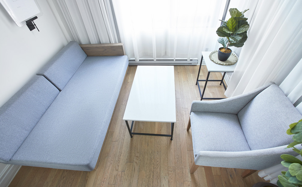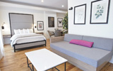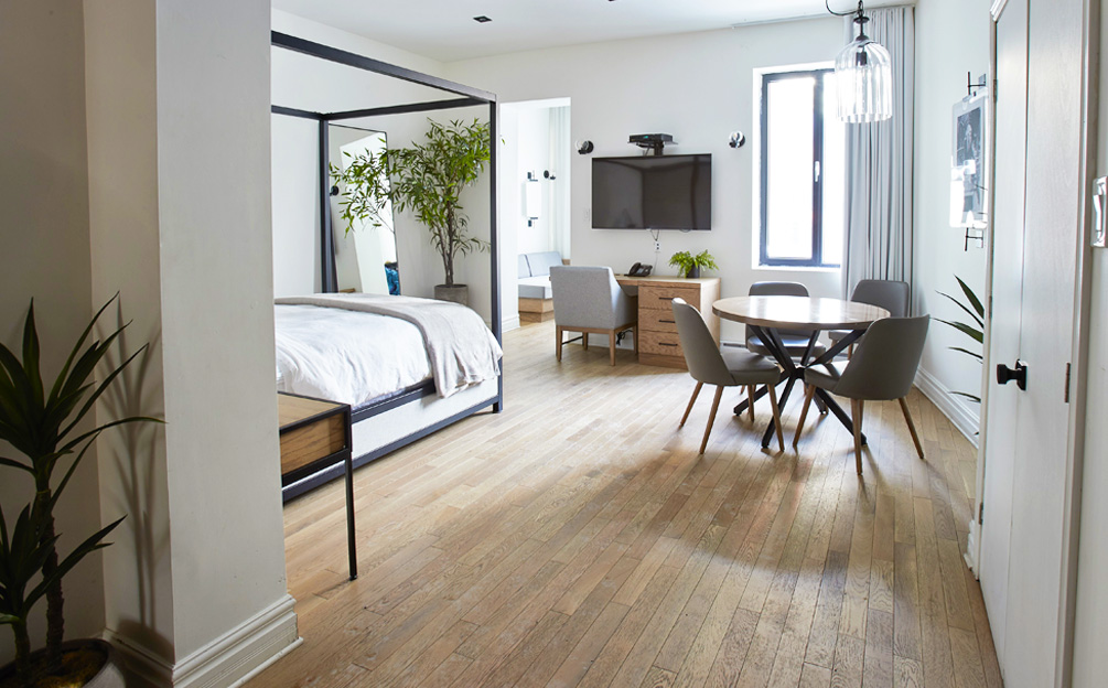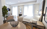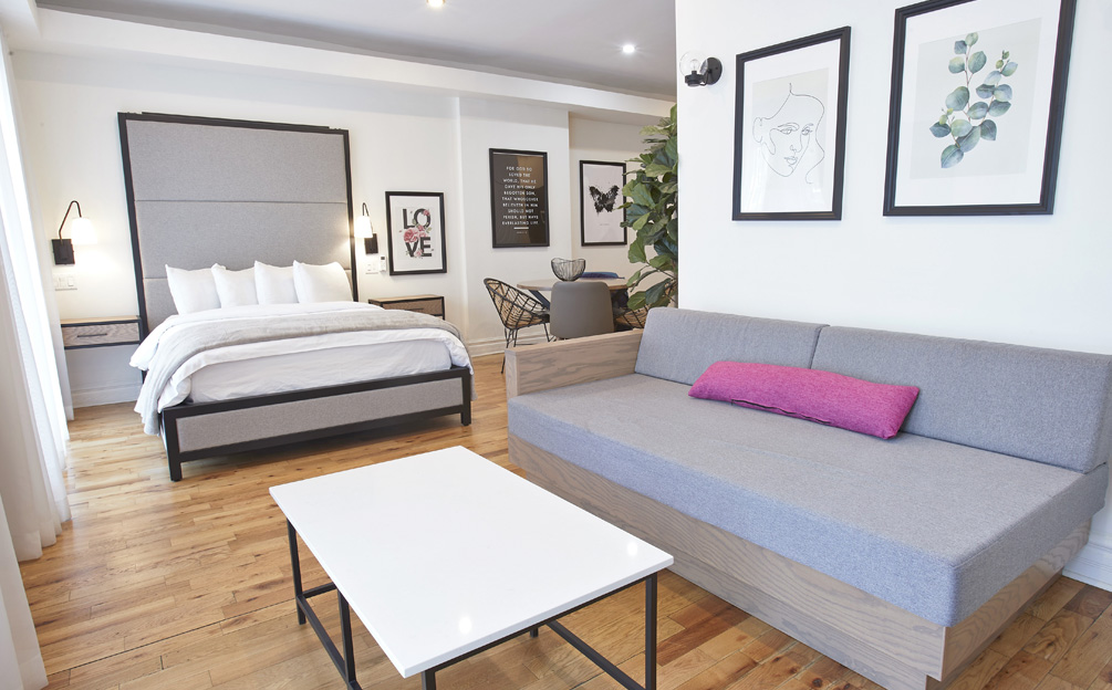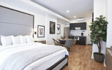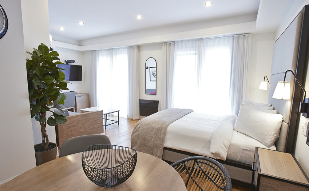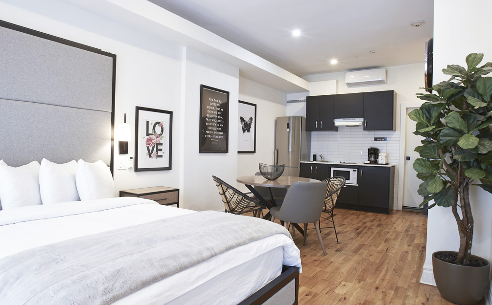 Nos chambres Exécutive comprennent également un espace cuisine tout équipé à même la chambre avec plaque à induction, un mini-frigo, un micro-ondes et une cafetière.