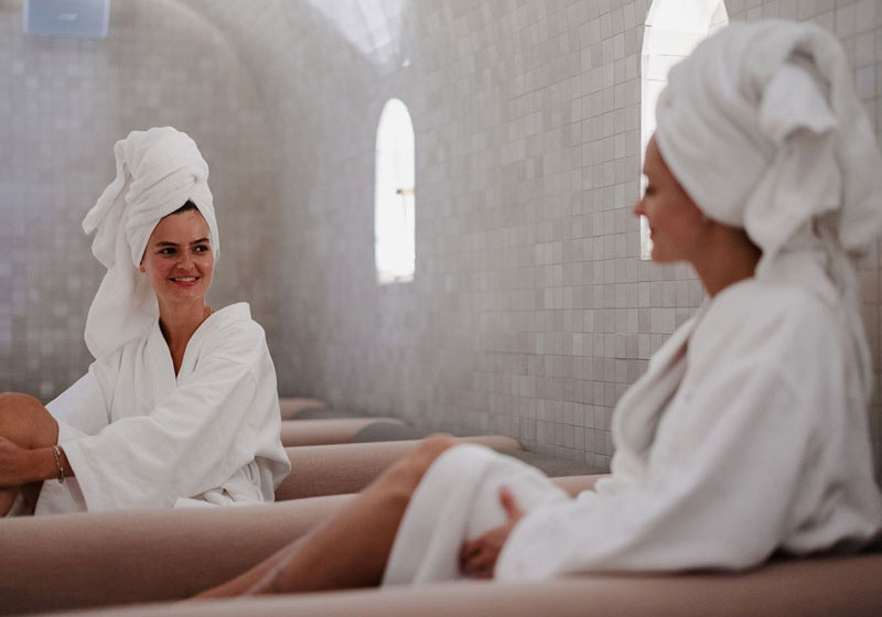 Commencez votre voyage dans la chaleur enveloppante de notre bain à remous, sauna sec ou hammam orné de mosaïques. Pendant 15 à 20 minutes, votre corps s’ouvre, transpire, libère tensions et toxines. Les muscles se dénouent, l’esprit s’apaise.